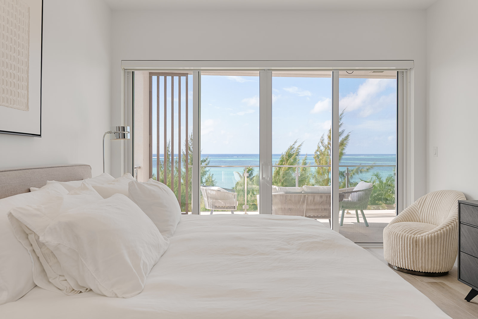 Located on the fourth floor at AURA, this 3-bedroom, 3.5-bathroom oceanfront residence offers 2,020 sq. ft. of well-designed living space with uninterrupted ocean views across South Sound. Spacious, light-filled, and fully furnished by award-winning IDG, the condo is turnkey and ready to enjoy.
