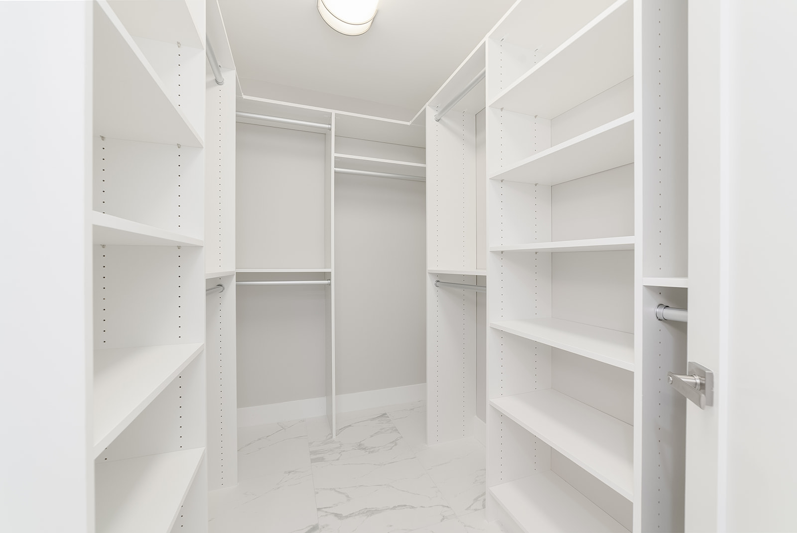 Inside, no detail has been overlooked. The chef’s kitchen features white quartz countertops, pearl-finish cabinetry, and top-of-the-line appliances, making it both functional and stylish. Adjacent is a sleek laundry closet with a quartz countertop for added convenience.