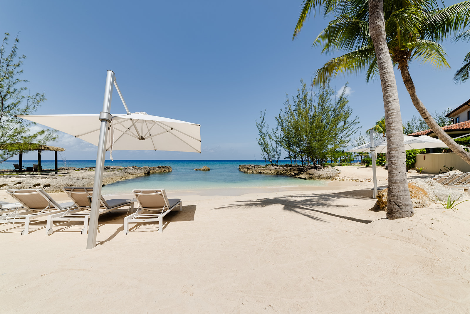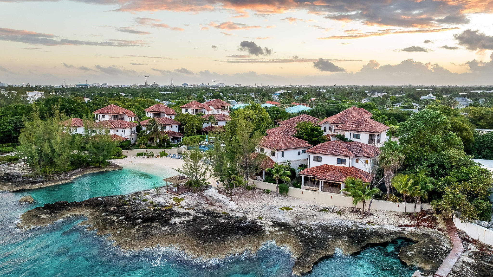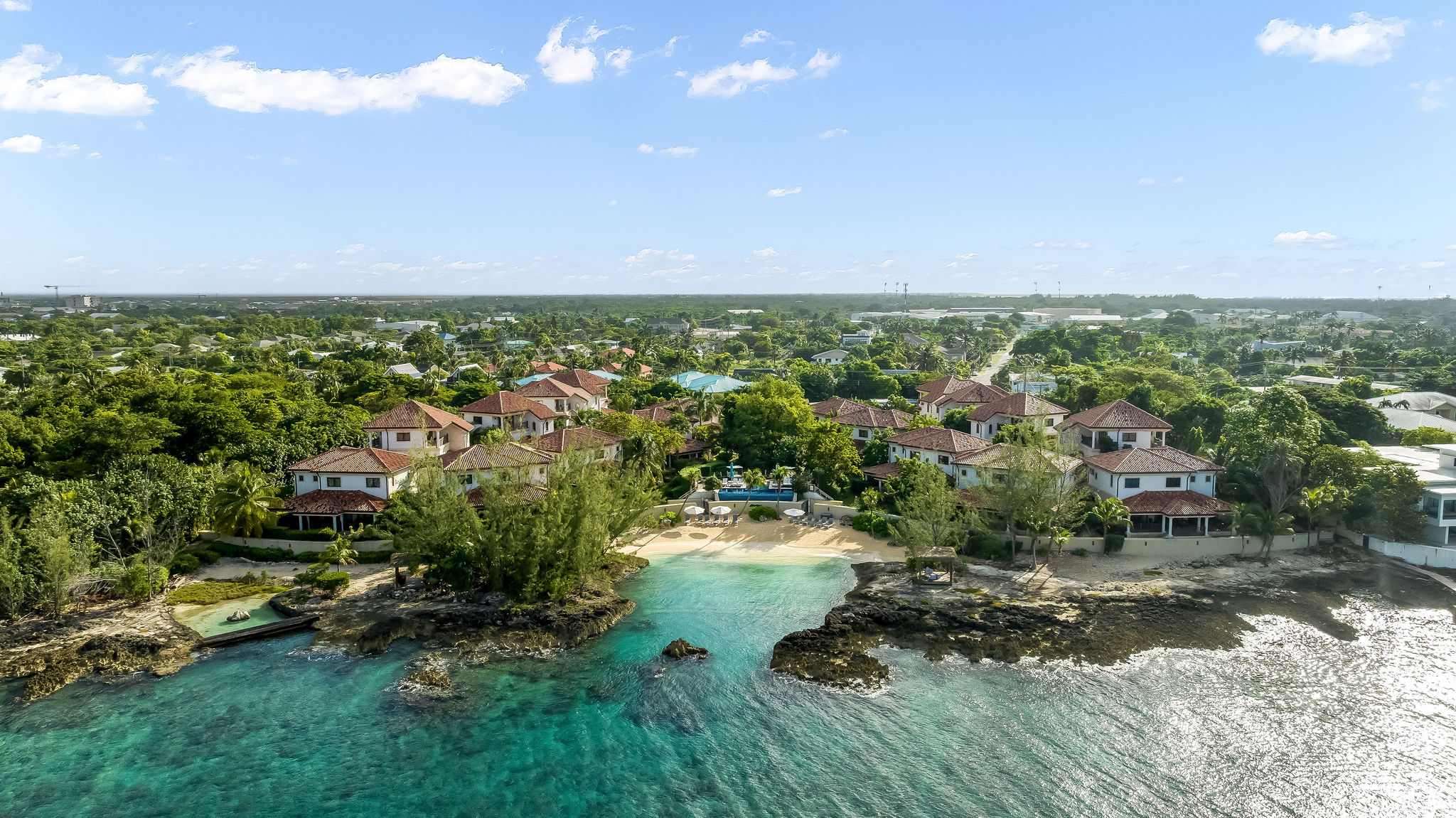 Set within 4+ acres of lush grounds, you’ll find koi ponds, waterfalls, a fitness center, infinity pool, hot tub, and over 520 ft of private beach – all just minutes from Seven Mile Beach and George Town.