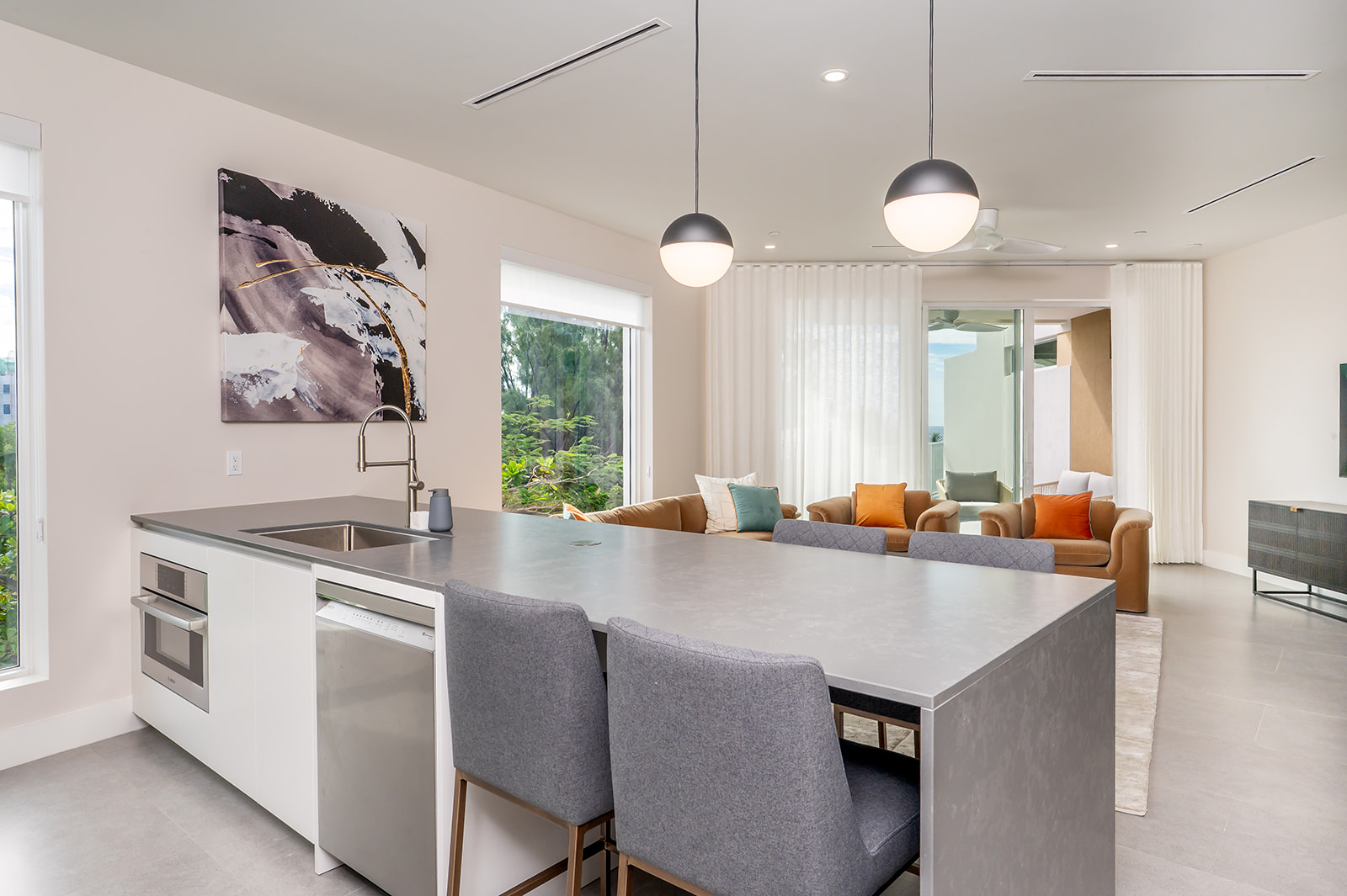 This unit comes fully furnished with design-forward, contemporary finishings that have been carefully curated by Dreamhouse Design to maximise the living space while complimenting the ocean views and abundance of natural light. The unit is completely turn-key without compromising on quality or style. All the essentials of home living are included: all furniture, rugs, artwork, media station, blinds and curtains, bedroom essentials, bathroom accessories, modern kitchen appliances, kitchen utensils (45+ items), patio furniture, and more.