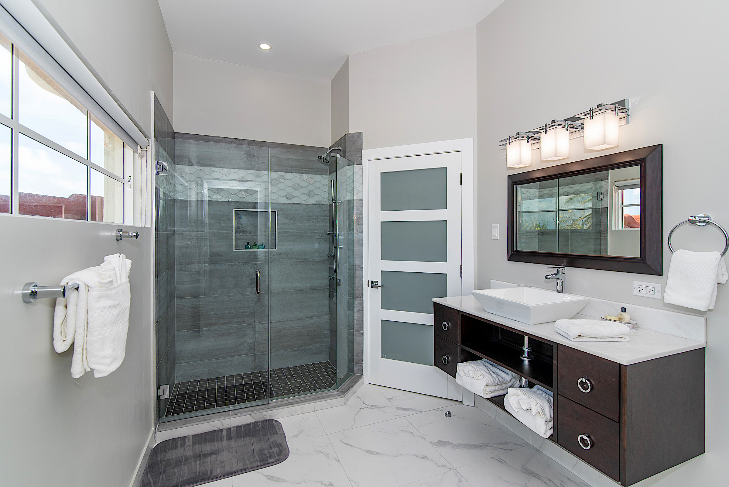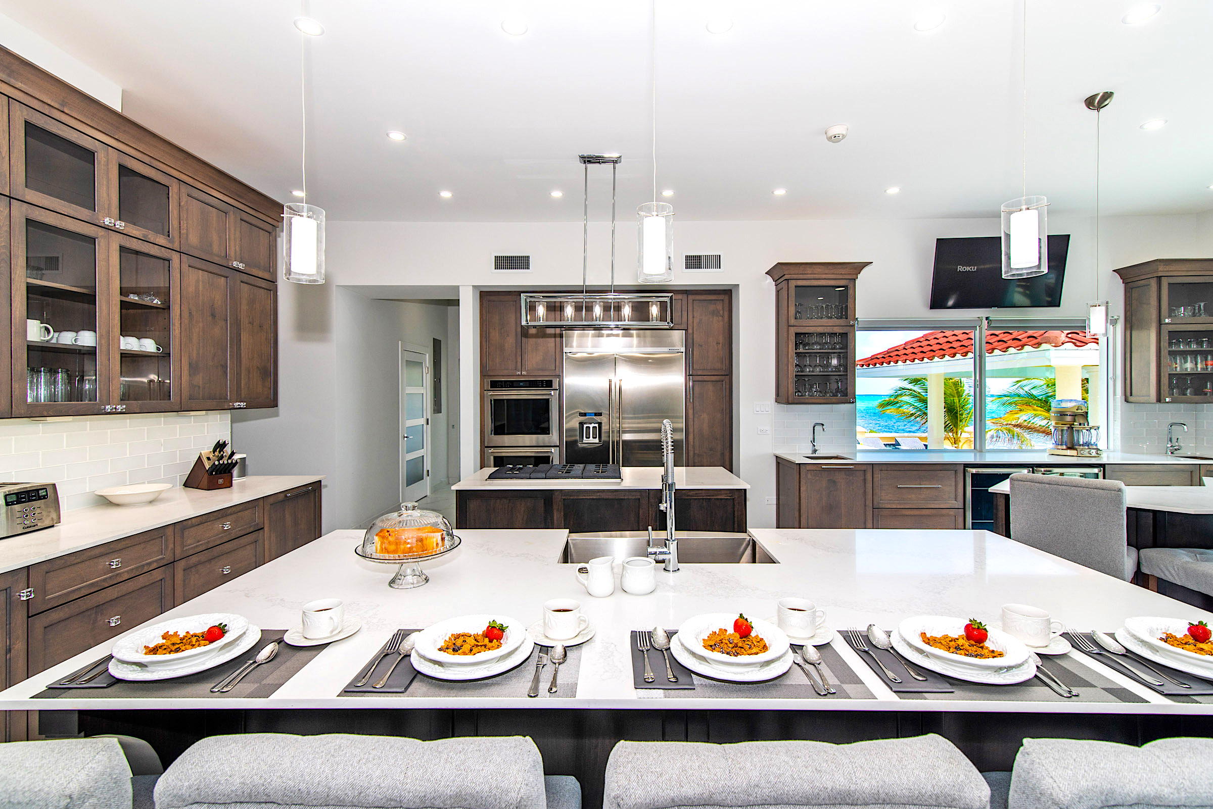 An elevated waterfront sun deck provides a perfect vantage point for sunrise views, quiet reading, or working remotely while overlooking the Caribbean Sea. The estate is further enhanced by state-of-the-art media and security systems, is being sold fully furnished, and includes a two-car garage.