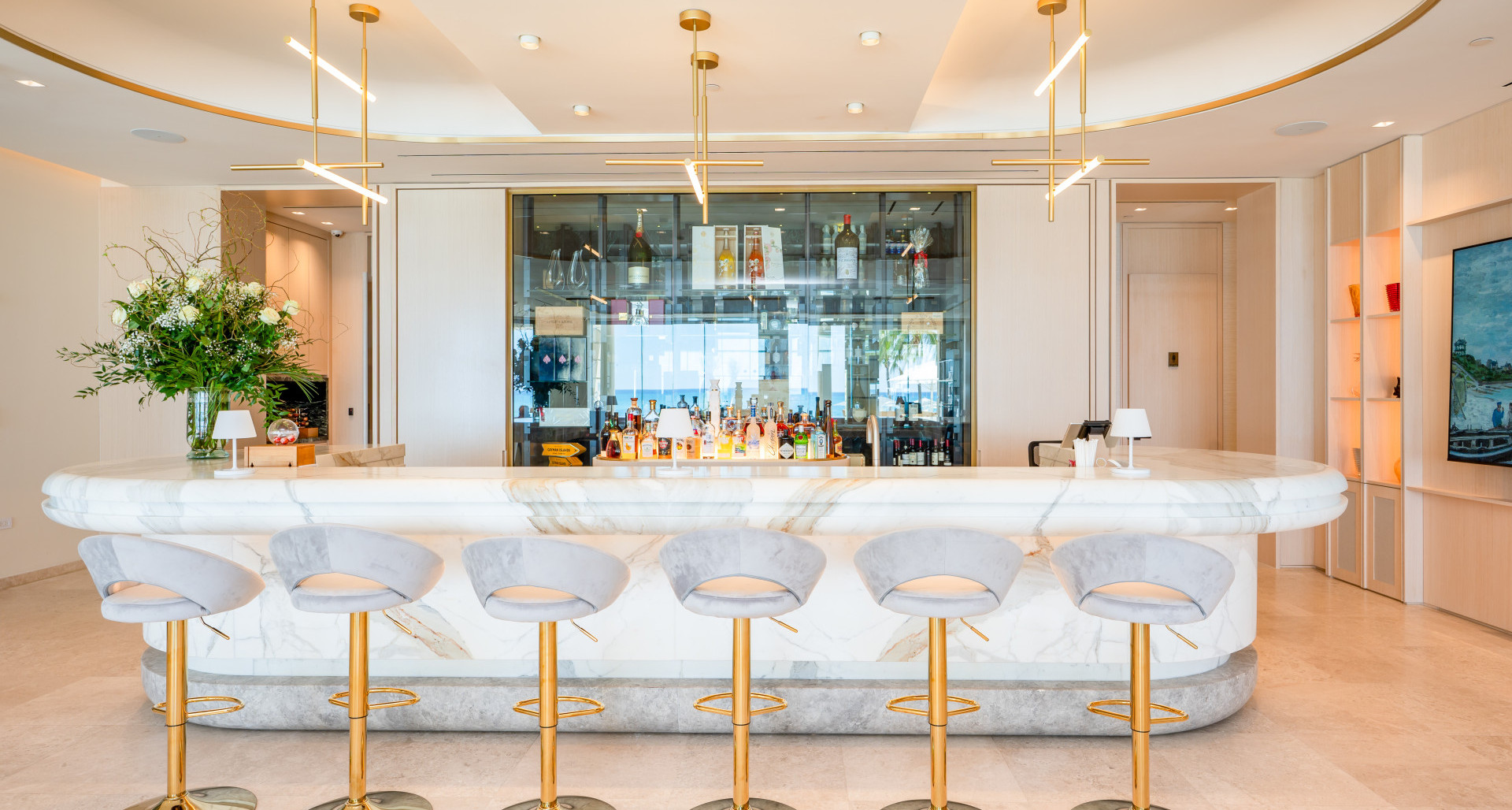 <p>This residence is complemented by world-class amenities: a beachfront infinity pool, jacuzzi, BBQ area, and three private guest suites for visiting friends and family. Exclusive indoor facilities include a beach-facing lounge, fitness studio, Boardroom, massage room, wine cellar, and a catering kitchen designed for entertaining at the highest level. Luxury services extend beyond the property itself, with 24-hour security, concierge, valet, dedicated property manager, car service, and daily morning coffee and tea service.</p>