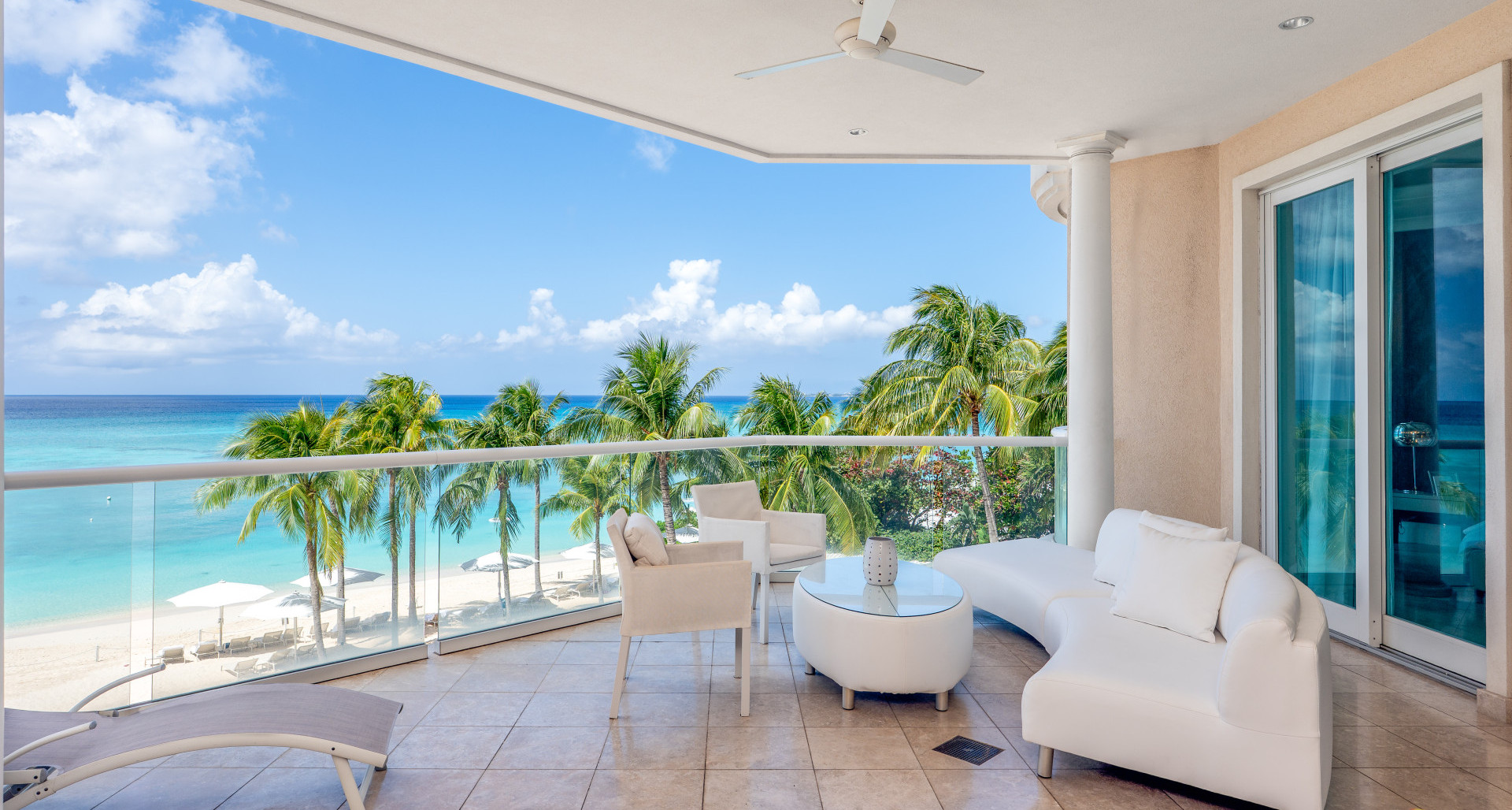 <p>Step onto the expansive balcony from the master suite or living area and savour year-round sunsets. Laminated glass panels, versus railings, preserve the view creating a seamless connection with the horizon.</p>